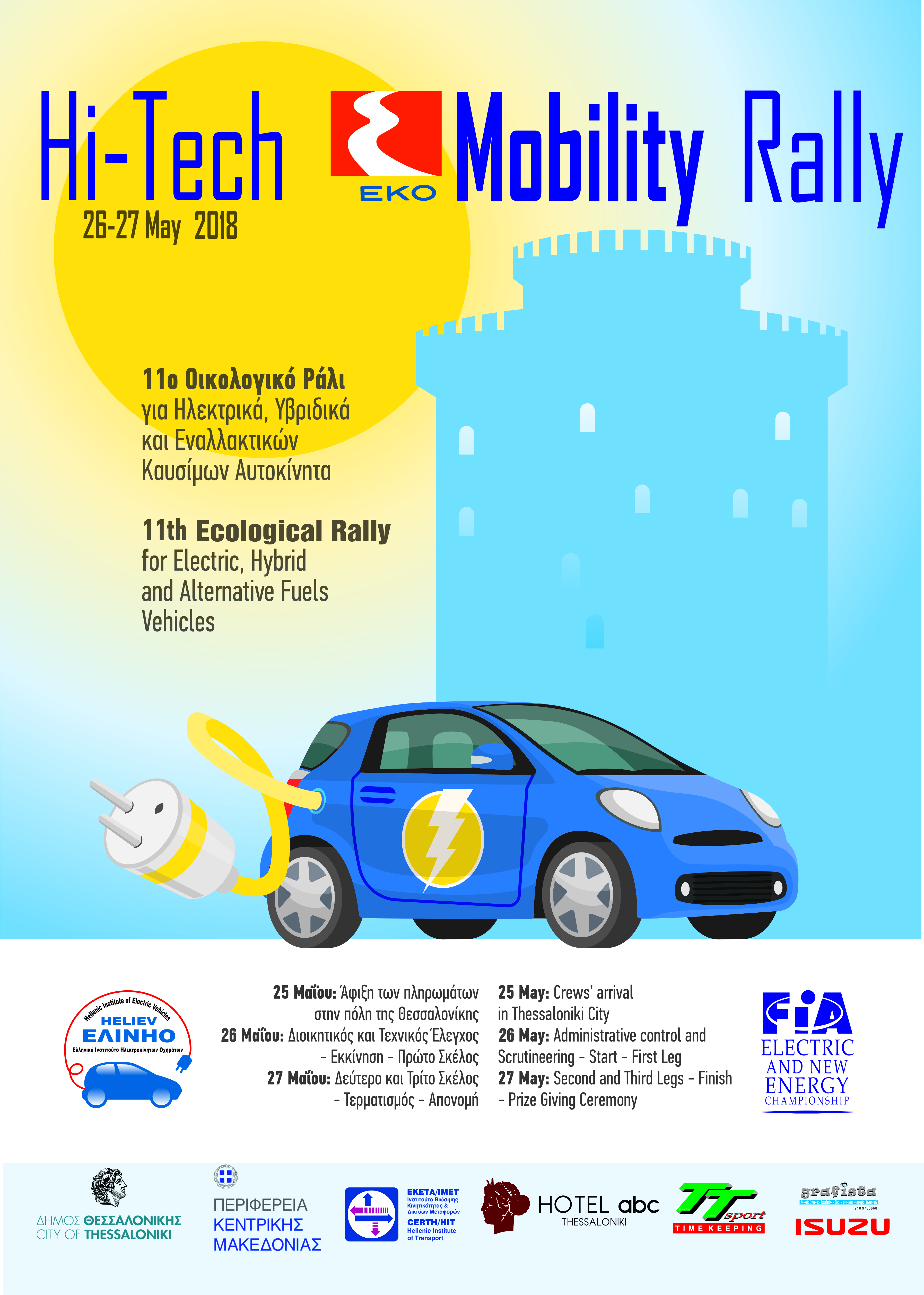 Δημοσιεύθηκε σήμερα 30 Μαρτίου 2018 η αφίσα του “Hi- Tech EKO Mobility Rally” που θα πραγματοποιηθεί στις 26-27 Μαΐου 2018 στη Θεσσαλονίκη.