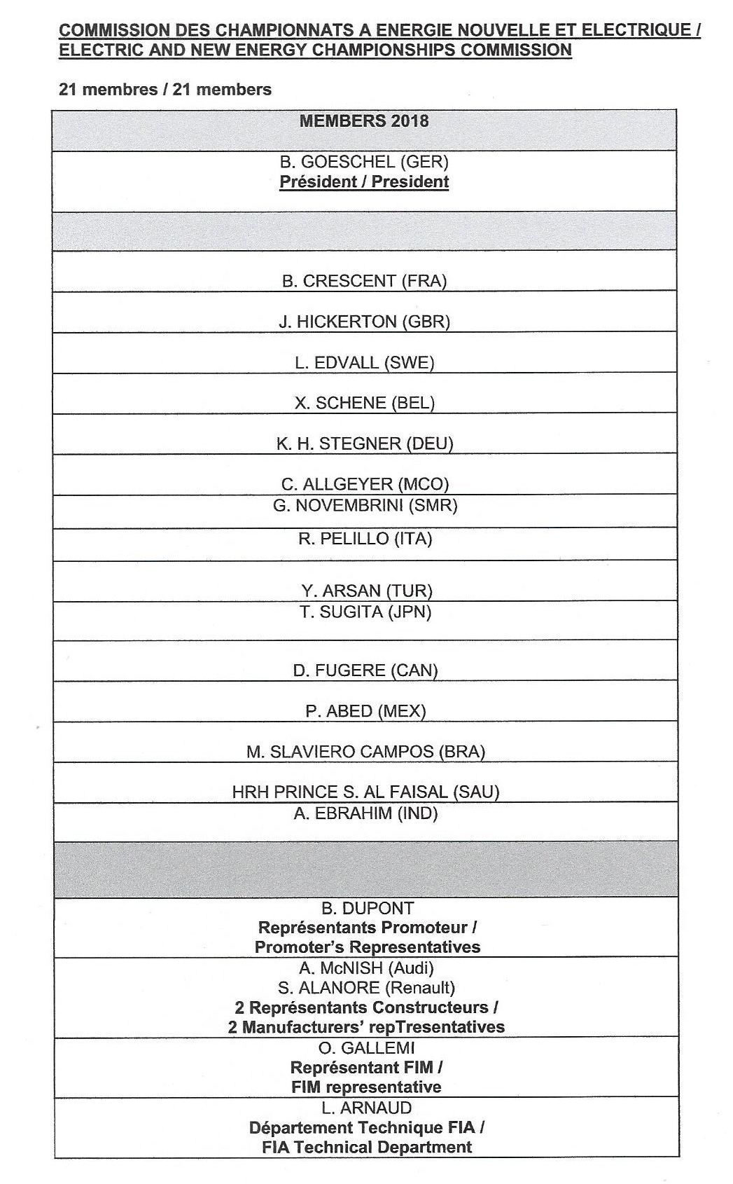 Δημοσιεύθηκε στην ιστοσελίδα της FIA η σύνθεση της επιτροπής για τις Εναλλακτικές Ενέργειες του έτους 2018. Στην επιτροπή αυτή η Ελλάδα κατείχε σταθερά θέση από της ιδρύσεώς της μέχρι και σήμερα. Η τελευταίως διαμορφωθείσα σχέση, σε ότι αφορά την άσκηση της αθλητικής εξουσίας εν Ελλάδι, μεταξύ της FIA και της ΕΛΠΑ φαίνεται να οδήγησε στην απόρριψη των υποψηφιοτήτων που υπέβαλλε η τελευταία για τις διάφορες επιτροπές μεταξύ των οποίων και την υποψηφιότητα του εκπροσώπου του ΕΛ.ΙΝ.Η.Ο.