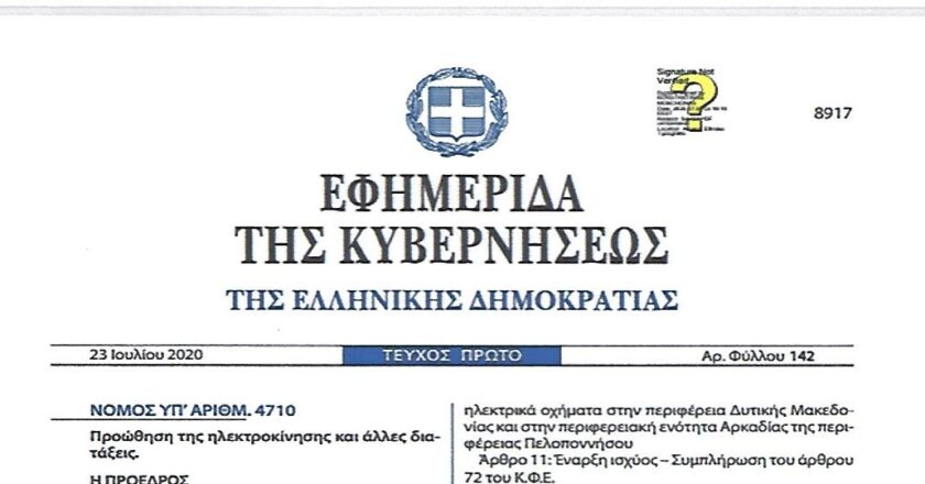 Ο νόμος 4710/2020 για την προώθηση της ηλεκτροκίνησης δημοσιεύθηκε στο ΦΕΚ με αρ. 142 Α της 23/7/2020. Ο χρόνος για …